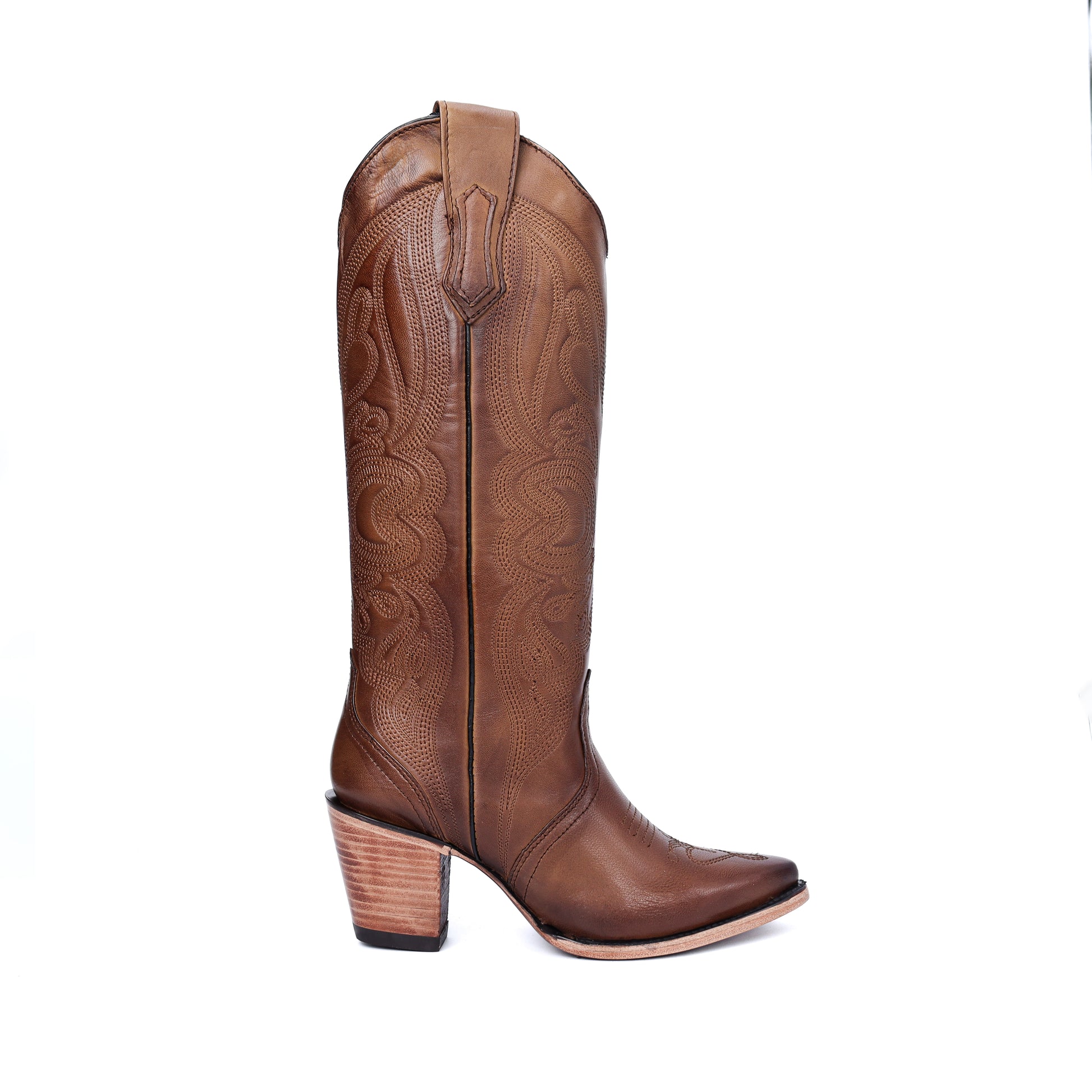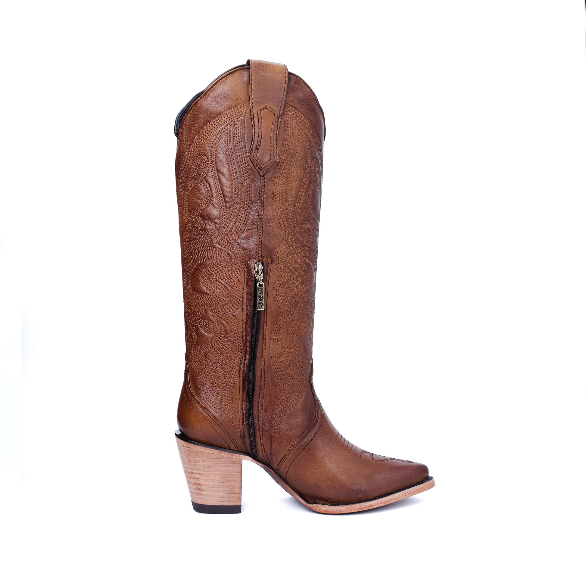 Bota Linda Alta en Piel de Bobino fabricada con piel bobino genuina con acabado difuminado a mano. Cuenta con suela de cuero con grabado láser y plantilla confort Goodyear Welt para máxima durabilidad.